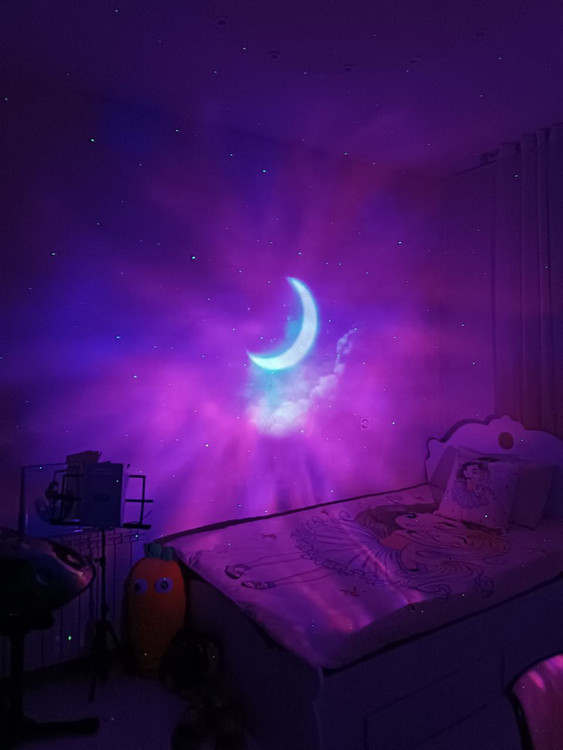 دارای قابلیت های:: تنظیم تایمر برای خاموش شدن،تنظیم سرعت نور کهکشانی،تنظیم شدت نور،قابلیت اتصال به اسپیکر توسط بلوتوث،دارای رقص نور لیزری