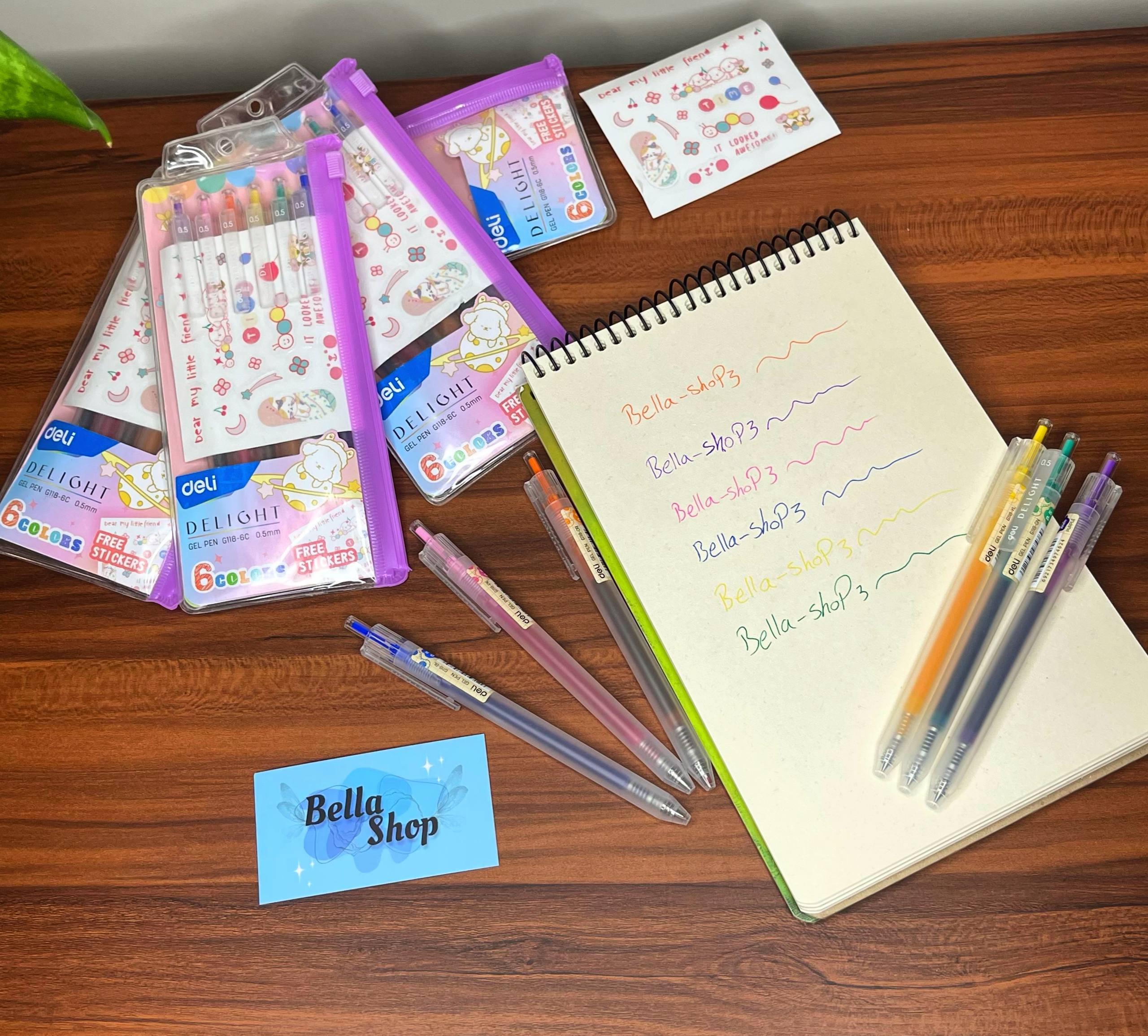 •اگه میخواید پک خودکار رنگی باکیفیت تهیه کنیدپیشنهاد بنده ایشونه! •خودش یه جامدادی شفاف زیپ کیپی داره. •دارای یک ورق برچسب دختر(کیوت)
