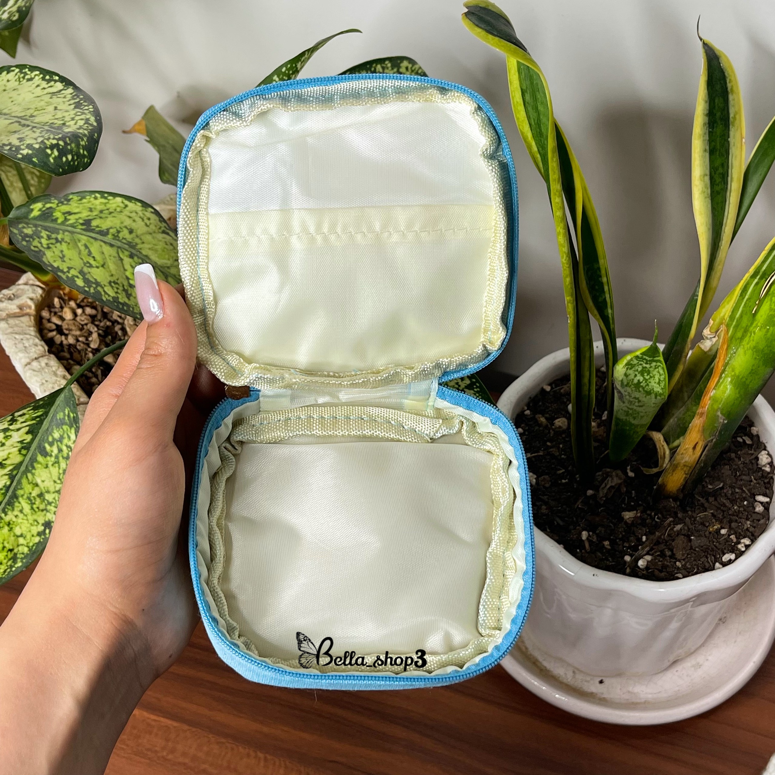 داخلش یه جیب داره و به عنوان کیف ارایشی و اقلامی مثل(پاد،کلیدو...) قابل استفادس🌱